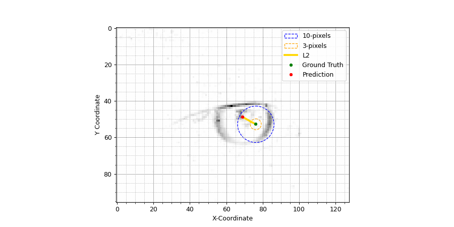 The model is trained and evaluated on the AIS 2024 Event-Based Eye Tracking Challenge Dataset, which contains recordings from 13 participants, captured using 480×640-resolution event camera. Each participant has between 2 and 6 recording sessions. The ground truth pupil (x- and y-) coordinates are provided at a resolution of 100Hz. The evaluation of the predictions is done at 20Hz at a resolution of 60x80 when the eyes are opened.